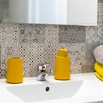 Diese Unterkunft verfügt über eine begehbare Dusche und eine getrennte Toilette, die Ihren Komfort erhöhen. Des Weiterem gibt es einen Haartrockner und Badelaken im Badezimmer.